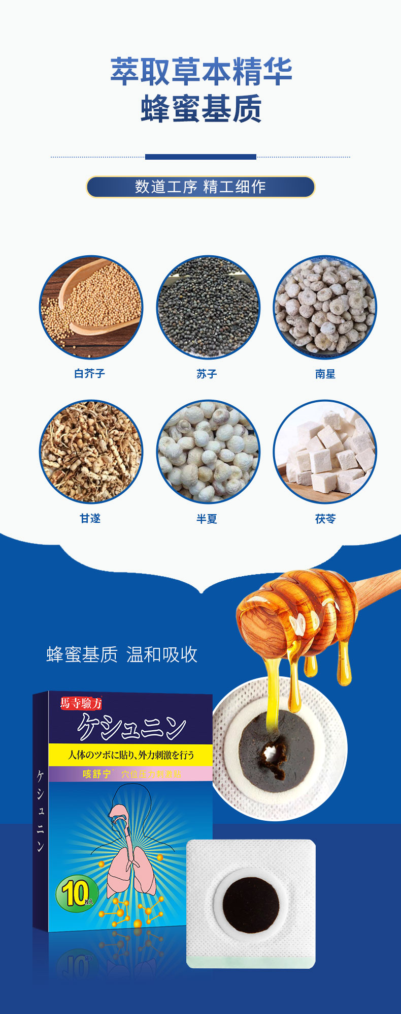 馬寺驗(yàn)方咳舒寧穴位貼,萃取草本,蜂蜜基質(zhì)溫和吸收,數(shù)道穴位貼加工工序,無(wú)紡布背襯穴位敷貼透氣親膚,貼敷方便,小巧便攜,持續(xù)溫護(hù)24小時(shí),正規(guī)工廠(chǎng),標(biāo)準(zhǔn)化生產(chǎn)車(chē)間,多樣化定制,出貨快,承接貼牌代加工,支持批發(fā)代理,量大從優(yōu)。